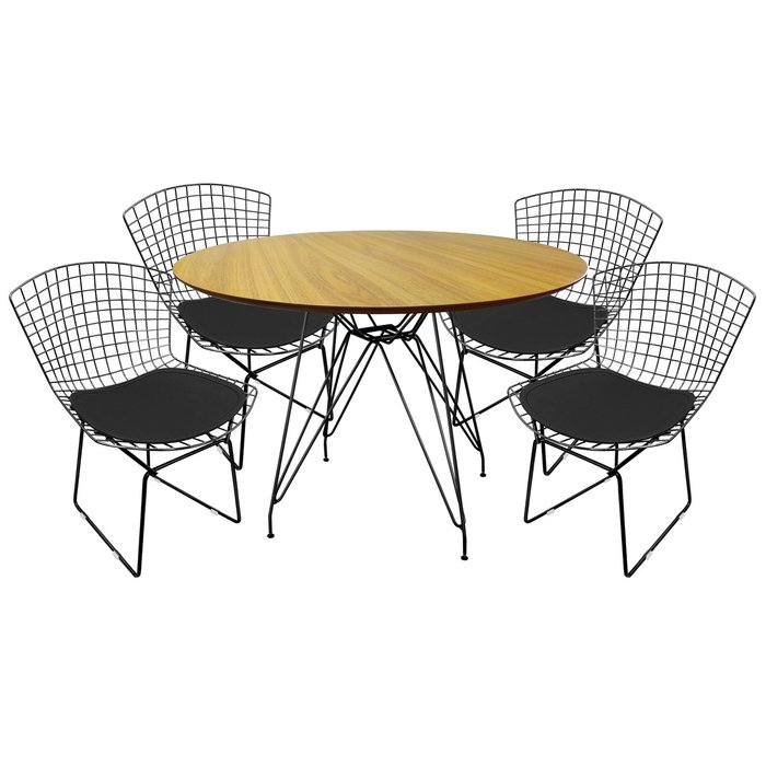Jogo de Mesa de Jantar Eames Preta 100cm com 4 Cadeiras Bertoia - Madeira Freijó