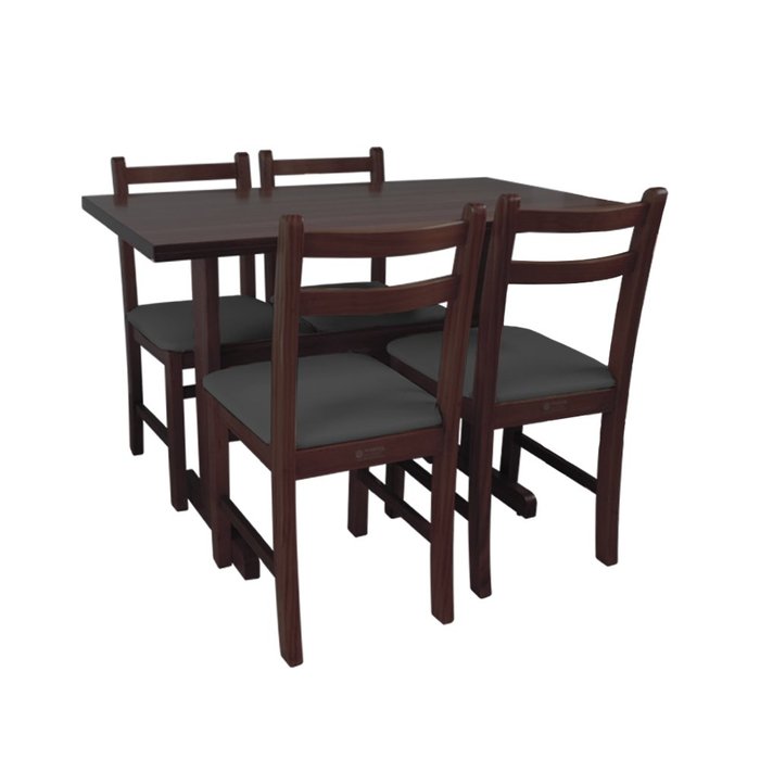 Jogo de Mesa de Madeira Fixo Floripa 1,20x70 Imbuia Pé H com 4 Cadeiras Estofado Preto