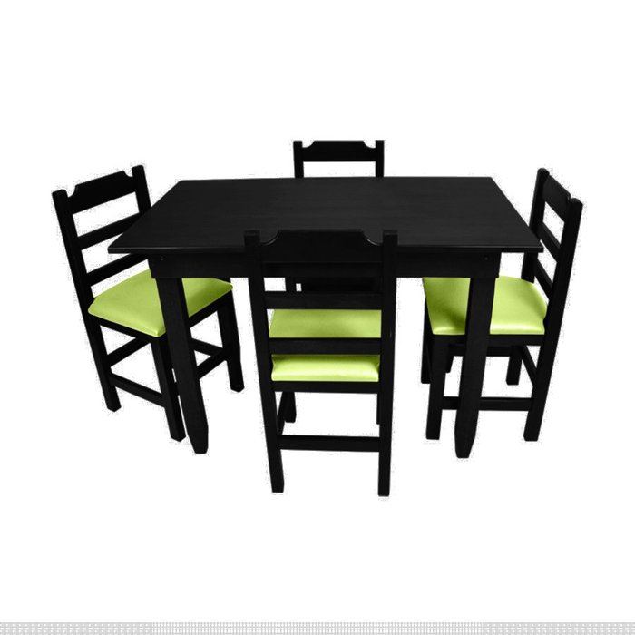 Jogo de Mesa de Madeira Fixo Paulista 120x70 Preto com 4 Cadeiras Estofado Verde