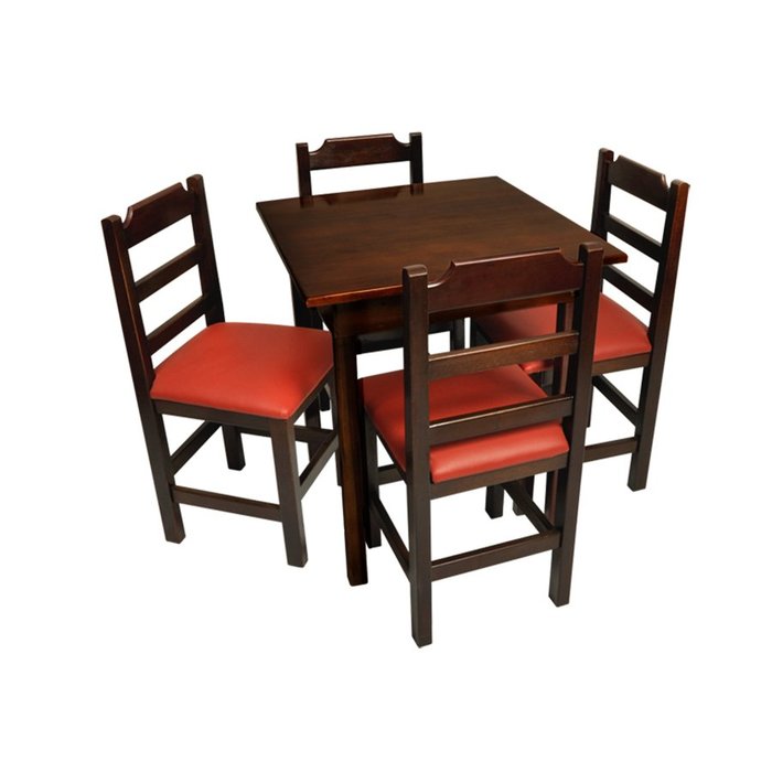 Jogo de Mesa de Madeira Fixo Paulista 70x70 Imbuia com 4 Cadeiras Estofado Vermelho