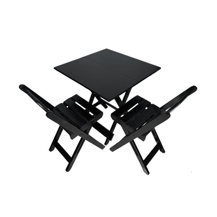 Jogo de Mesa Dobrável 70x70 com 2 Cadeiras de Madeira Maciça Preto Preto