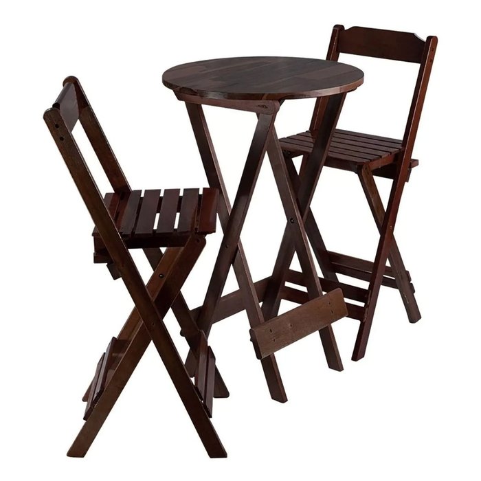 Jogo de Mesa Dobrável Bistro 2 Cadeiras Madeira Maciça - Imbuia