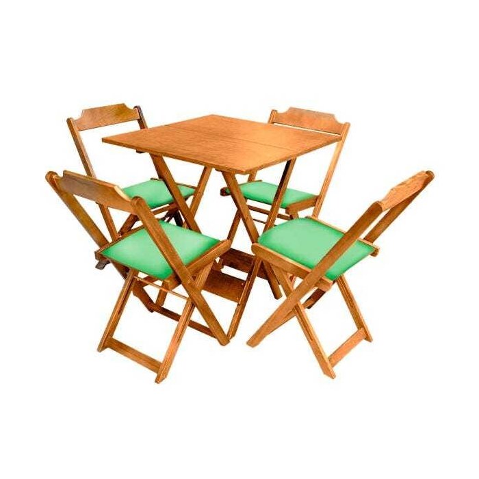 Jogo de Mesa Dobravel de Madeira 70x70 com 4 Cadeiras Natural Estofado Verde