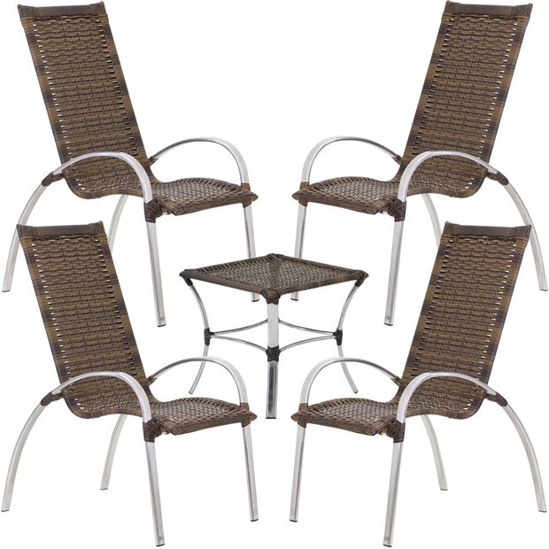 Jogo de Mesa e Cadeiras de Alumínio em Fibra Sintética Área Externa ou Interna Trama Original Argila