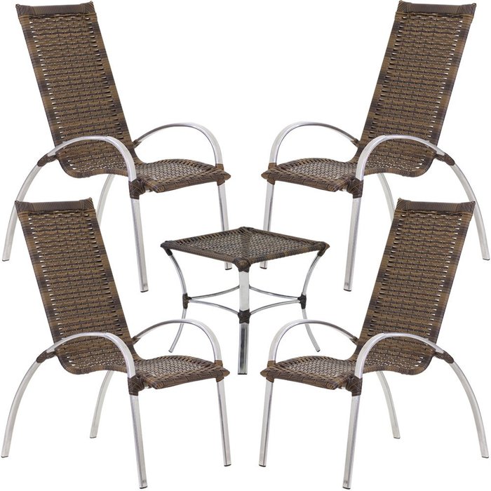 Jogo de Mesa e Cadeiras de Alumínio em Fibra Sintética Área Externa ou Interna Trama Original
