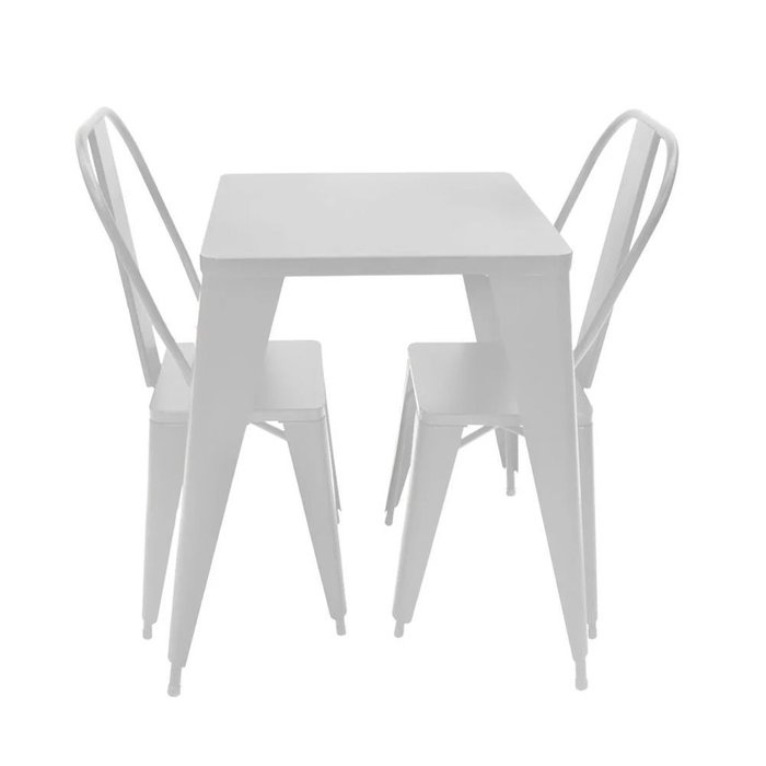 Jogo de Mesa Industrial Design 60x60cm Premium Iron Tolix com 2 Cadeiras Branco