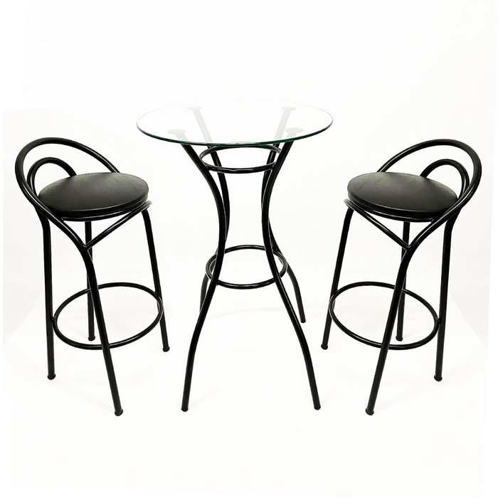 Jogo de Mesa Nina Bistrô Altura 92cm com Vidro + 2 Banquetas Cozinha Redonda cor Preta Poltronas do Preto