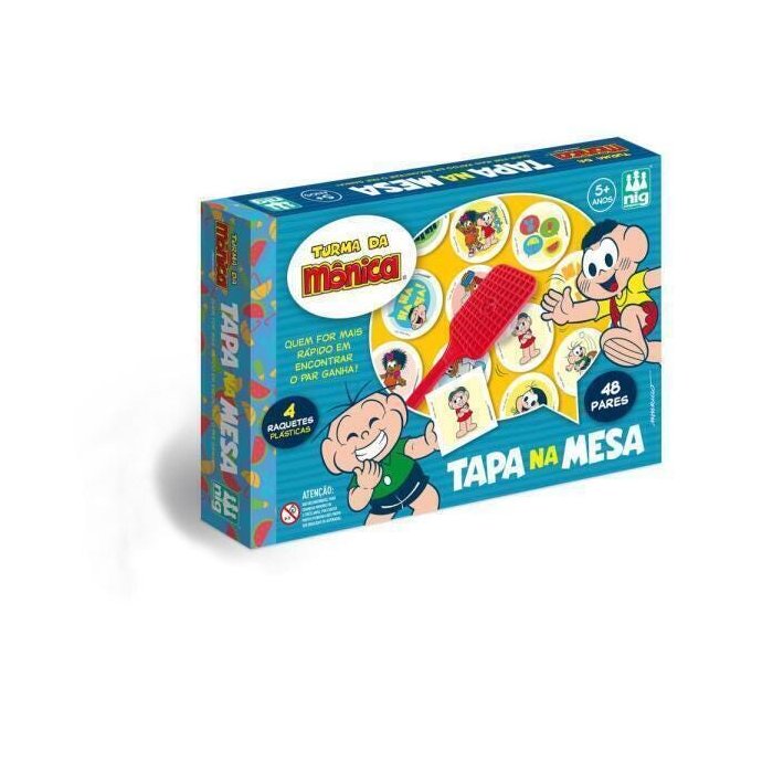 s crianças vão curtir muito depois de brincar de montão com o tapa na mesa da Turma da Mônica Indicado para crianças acima de 5 Anos, o jogo vem com 4 raquetes para brincar. Quem for o mais rápido a encontrar o par, ganha. Divirta-se com sua família com os personagens mais carismáticos do Maurício de Souza. Imagens meramente ilustrativas.