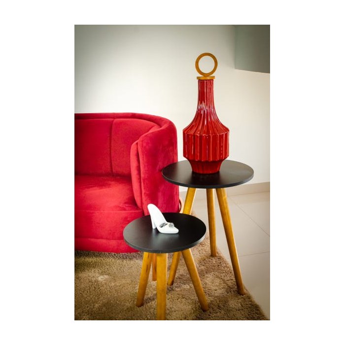Jogo De Mesinhas Redondas De Apoio Lateral De Canto Banqueta Mesa Preta