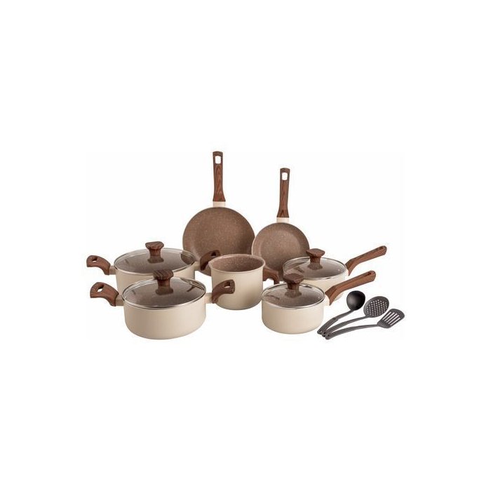 Jogo de Panelas 10 Pç Revestimento Cerâmico Indução Mimo - Bege