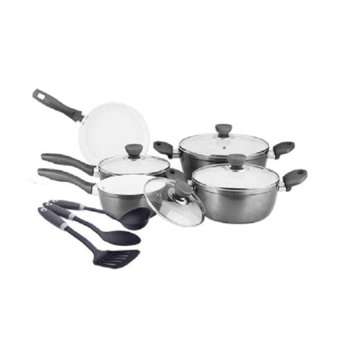 Jogo De Panelas Em Alumínio 8 Pecas Ana Maria Braga Com 2 Caçarolas E Revestimento Cerâmico Lisboa Com Kit De Utensílios