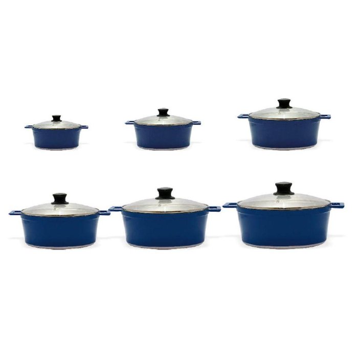 Jogo de Panelas Alumínio Batido Azul com Tampa de Vidro Azul