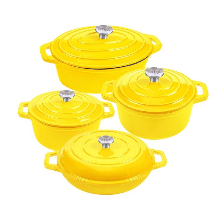 As panelas Stex Cookware são produzidas a partir de ferro fundido para a retenção e distribuição uniforme do calor. A tampa pesada encaixa-se perfeitamente na panela retendo a umidade. Com um interior liso para gratinar perfeitamente, oferece durabilidade e cores ricas, perfeito para servir.