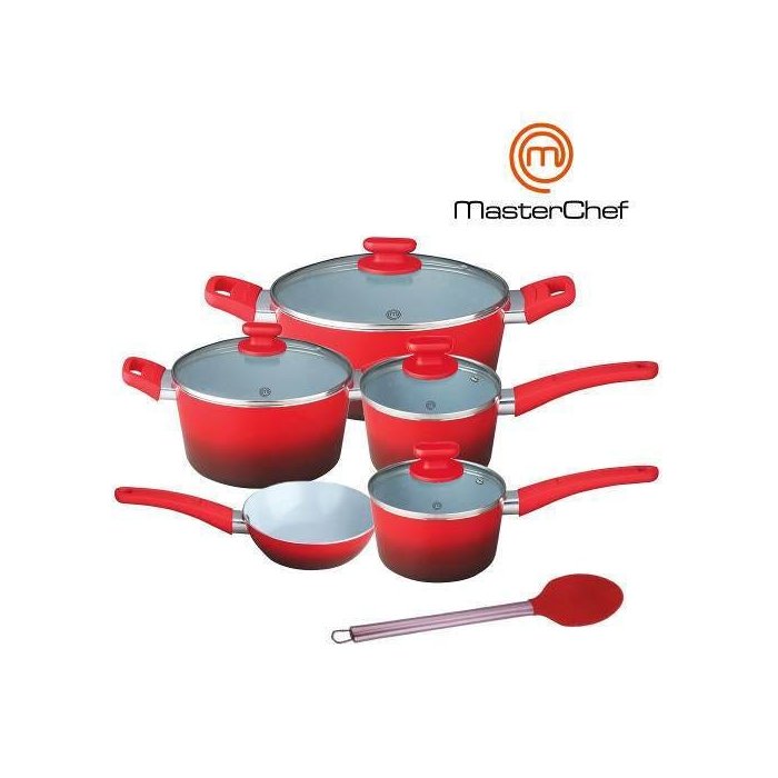 Jogo de Panelas Antiaderente MasterChef Oficial 6 Peças Com Colher - Vermelho