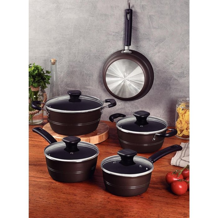 Jogo de Panelas Antiaderente Tramontina Sicília 5 Pç Avelã Preto