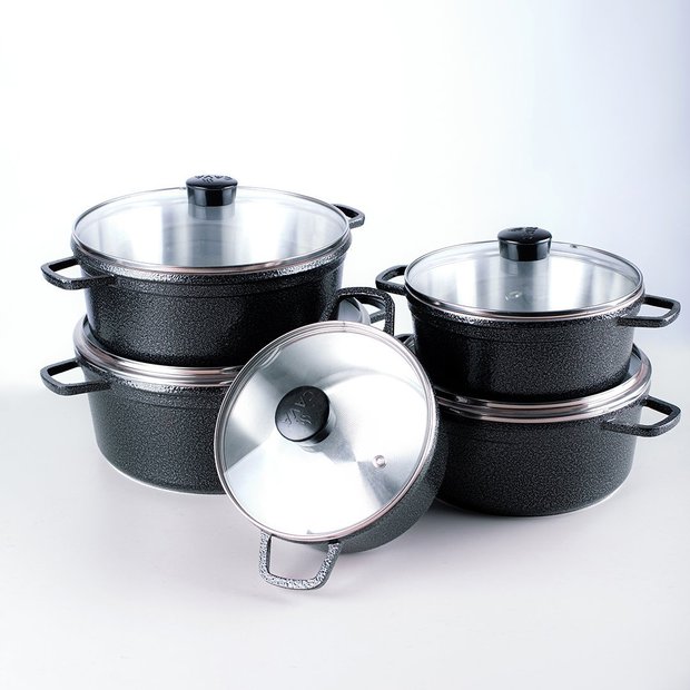 Jogo De Panelas Cava 5 Peças Tampa De Vidro CraqueadaJogos de panelas CAVA em alumínio fundido com 5 peças TAMPA DE VIDRO.As Panelas de Alumínio Fundido CAVA possuem excelente qualidade e durabilidade, são fáceis de manusear e com aquecimento rápido, são práticas e fáceis de limpar.A distribuição de calor é uniforme devido a sua espessura robusta, garantindo alta performance. Seu design moderno aliado a tecnologia mantém alto desempenho para preparar seus alimentos.Pode ser utilizado em todas as fontes de calor (fogão convencional, industrial e a lenha).+ As alças são integradas, muito resistentes.+ O alumínio fundido permite aquecimento mais rápido e uniforme.+ Não gruda os alimentos, proporcionando fácil limpeza.+ Por ter uma espessura grossa 4,5 mm, conserva o calor por mais tempo, mantendo o sabor e as propriedades e nutrientes dos alimentos.+ Possuem excelente acabamento, e ocupam pouco espaço para armazenamento, podendo ser encaixadas uma dentro da outra.+ Pode ser usada em vários tipos de fogão, inclusive FOGÃO A LENHA. (Fogões industriais, convencionais e a lenha).+ Com uma espessura de 4,5 mm, é muito difícil amassar, não quebram, não enferrujam e não desbotam.+ Produto de alta qualidade e durabilidade.1 PANELA Nº16 - 1,3L -1 PANELA Nº18 - 1,8L -1 PANELA Nº20 - 2,4L1 PANELA Nº22 - 3,3L1 PANELA Nº24 - 4,3LPanelas em alumínio Fundido, Tampas de Vidro, alças integradas e pomel em baquelite.