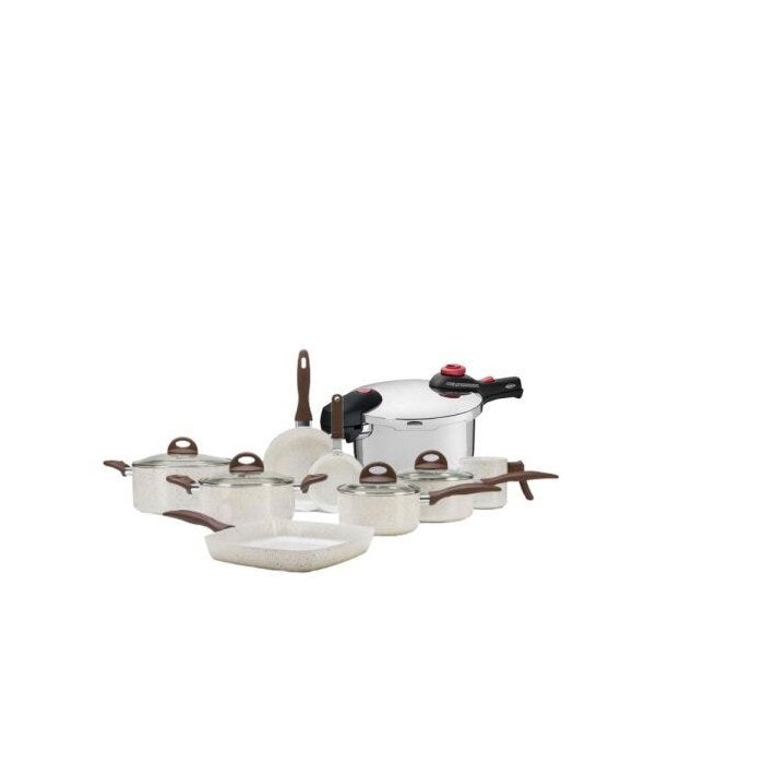 Jogo de Panelas Ceramic Life Smart 8 Peças Brinox com Panela de Pressão Supra Brinox VANILLA