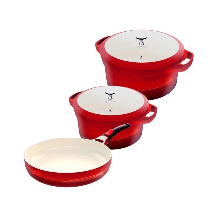 Jogo de Panelas Cerâmica Vermelha 3 Peças Vai Forno Caçarola 20cm 24cm e Frigideira 24cm Le Cook Vermelho