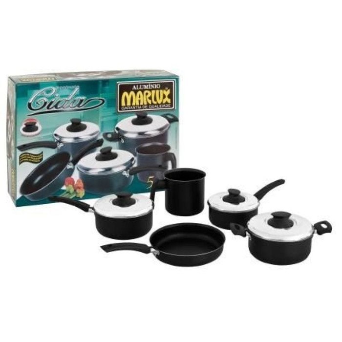 Jogo de Panelas Cida 5 Peças Antiaderente com Tampas Polida - Marlux