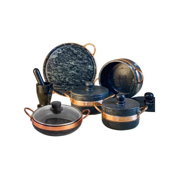 Descubra o segredo das gerações para cozinhar de forma saudável, eficiente e cheia de sabor. Nosso exclusivo Jogo de Panelas de Pedra Sabão é meticulosamente esculpido à mão por artesãos locais, combinando tradição milenar com design moderno. Cada peça é única, feita para realçar os sabores naturais dos seus alimentos e garantir uma experiência culinária sem igual.