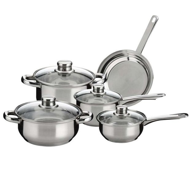 Jogo de Panelas com 05 Peças sendo:01 Panela 16cm (diametro); 01 Caçarola 16cm (diametro); 01 Caçarola 18cm (diametro); 01 Caçarola 20cm (diametro); 01 Frigideira 24cm (diametro). Por ser em inox este Jogo de Panelas oferece melhor cozimento e maior economia, maior facilidade na limpeza, praticidade e durabilidade. As tampa são fabricadas em vidro temperado com saída para vapor. Pode ser utilizada em fogão eletrico, a gas, vitro-ceramica e lava-louças. CARACTERISTICAS: Dimensões da Embalagem: 46 cm (largura) x 26 cm (profundidade) x 15 cm (altura). Material: Inox, Vidro.