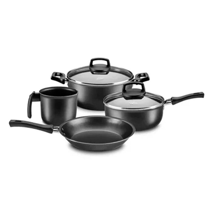 Jogo de Panelas Mta Safira 4 Peças Antiaderente Tampa de Vidro Preto