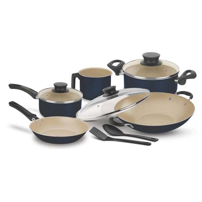 Agora na cor azul, o Jogo de Panelas Paris com 7 Peças veio ainda melhor, com Panela Wok. Perfeito para preparar muitas delícias para a família e receber amigos!