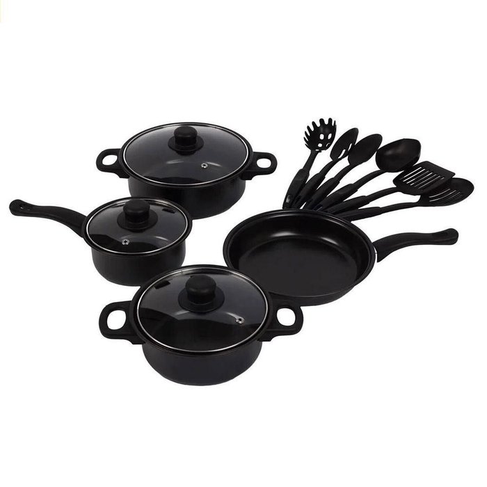 Jogo de Panelas Tampa de Vidro Frigideira Utensilios Rapido Cozimento Refeiçao Antiaderente Preparo Preto