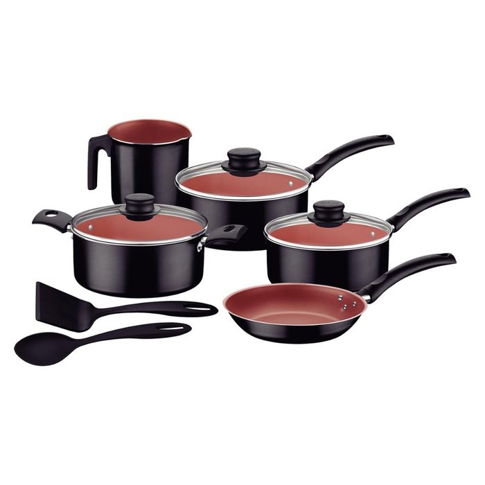 A linha Turim sempre faz sucesso na sua cozinha, além da praticidade do cozimento uniforme, proporcionado pelo revestimento interno de antiaderente Starflon Max, elas permanecem bonitas por muito mais tempo. São fáceis de limpar, pois, devido ao antiaderente, os alimentos não grudam. Podem ser utilizadas em fogão a gás e elétrico e vitrocerâmicos - resistência elétrica. Indicações de uso: Antes do primeiro uso lave os utensílios com detergente e água morna e seque imediatamente. Produto com certificação compulsória certificada pela 0040 - SGS DO BRASIL, registro 001780/2018, conforme portaria INMETRO 419/2012. Modelo: Turim Cor: Preto e Cobre Material: Alumínio Revestimento Externo: Poliéster Revestimento Interno: Antiaderente Starflon Max Tampas: Vidro Temperado Cabos e Alças: Baquelite Quantidade de Peças: 7 Capacidade Frigideira: 20cm ; 0,8L Capacidade Panela: 18cm ;2,0L Capacidade Caçarola: 18cm ; 2,0L Capacidade Fervedor: 12cm ; 1,0L Tipo de Fogão: Gás, Elétrico, Indução, Vitrocerâmico - resistência elétrica Máquina de Lavar Louça: Sim Marca: Tramontina Conteúdo da embalagem: 1 Frigideira, 2 Panelas, 1 Caçarola, 1 Fervedor, 1 Espátula, 1 Colher Dimensões aproximadas do produto: 19 x 29,2 x 45,7cm (A x L x P) Dimensões aproximadas da embalagem: 19 x 30 x 46cm (A x L x P) Peso aproximado do produto: 2,24Kg Peso aproximado da embalagem: 2,3 Kg Informações Adicionais: Proporciona Cozimento Rápido e Uniforme Informações Importantes: - Os objetos que ambientam as imagens, não acompanham o produto. - Fique atento: As cores das imagens podem sofrer alterações devido a luminosidade, configurações do monitor e até mesmo a percepção do usuário.