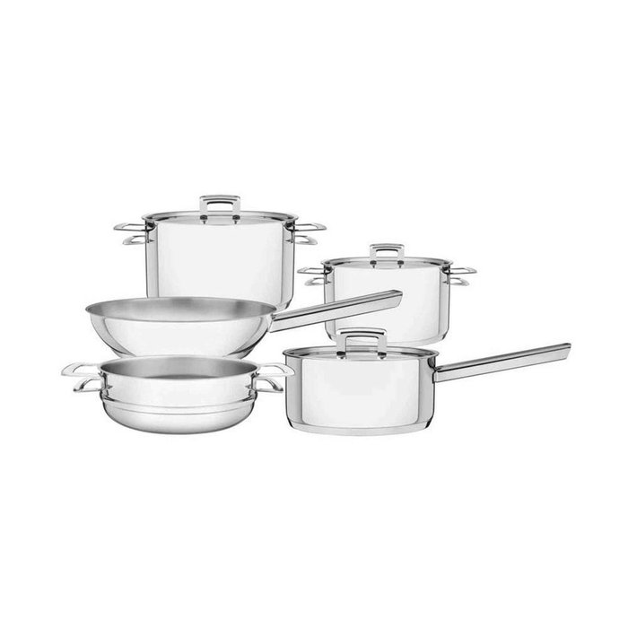 Jogo De Panelas Tramontina Brava Em Aço Inox Fundo Triplo Com Tampa Plana 5 Peças Tramontina