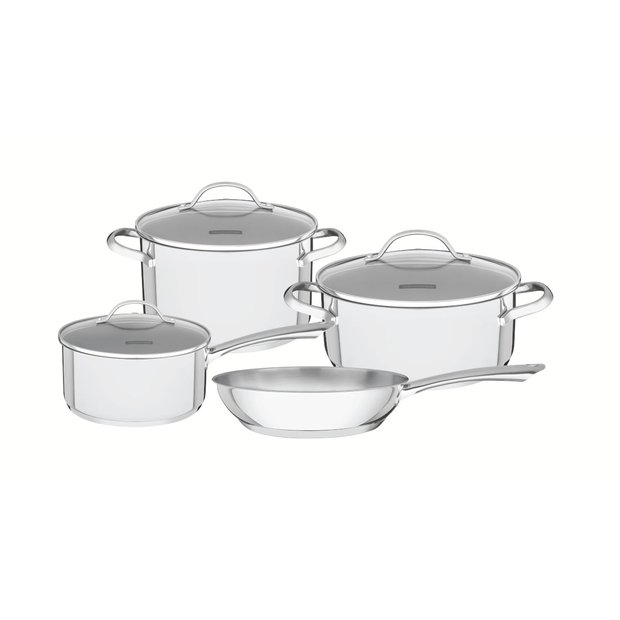 Jogo de Panelas Tramontina Una Aço Inox Fundo Triplo Tampas de Vidro 4 Peças Prata