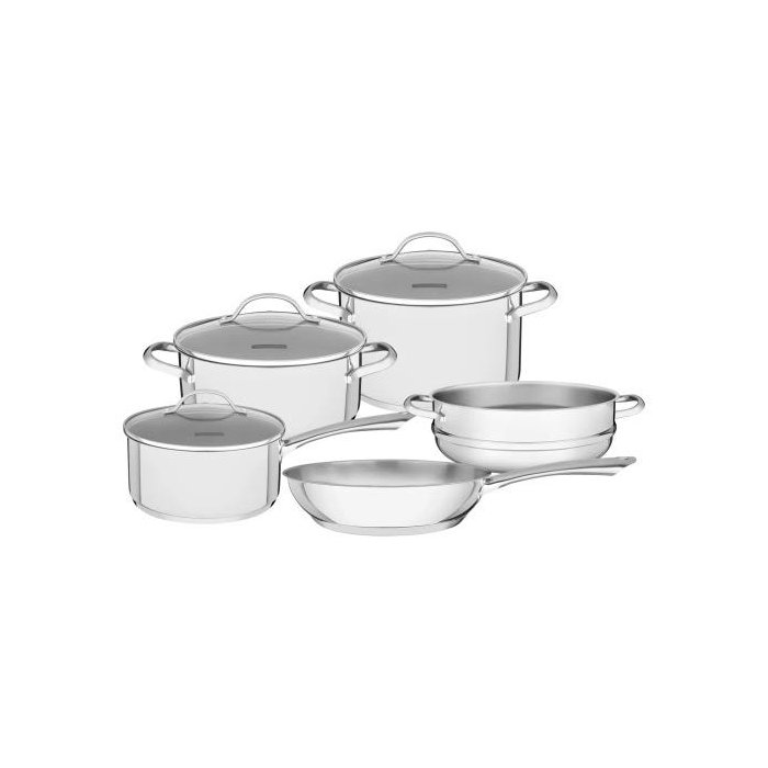 Jogo de Panelas Tramontina Una em Aço Inox com Fundo Triplo e Tampas de Vidro 5 Peças