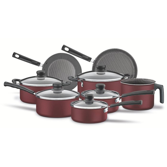 Para proporcionar refeições mais saborosas e preparadas com muito mais praticidade, o jogo de panelas Tramontina Versalhes em alumínio com revestimento interno e externo antiaderente Starflon Max vermelho 08 peças é indispensável. Com elas, você prepara receitas para o dia a dia e com muito mais qualidade, pois são produzidas em alumínio com espessura especial e revestimento interno e externo de antiaderente Starflon Max. Devido a essas características, as peças cozinham os alimentos de maneira rápida e uniforme, evitam que eles grudem na superfície, são fáceis de limpar, mais duráveis e não prejudiciais à saúde. Os cabos e alças são em baquelite antitérmico e os pegadores das tampas em nylon, dois materiais que não aquecem e proporcionam maior segurança durante o manuseio. As panelas e caçarolas do jogo vem acompanhadas de tampas de vidro temperado com bordas de aço inox que auxiliam na visualização dos alimentos e facilitam seu preparo. Além de todas essas características, as peças podem ir à máquina de lavar louças, otimizando sua rotina na cozinha!