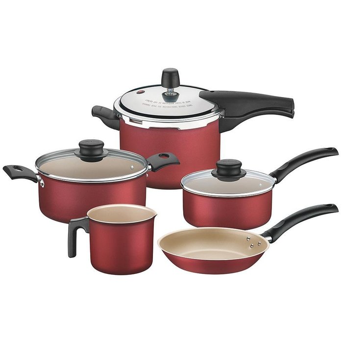 Jogo de Panelas Turim 5 Peças Vermelho inclui Panela de Pressão - Tramontina