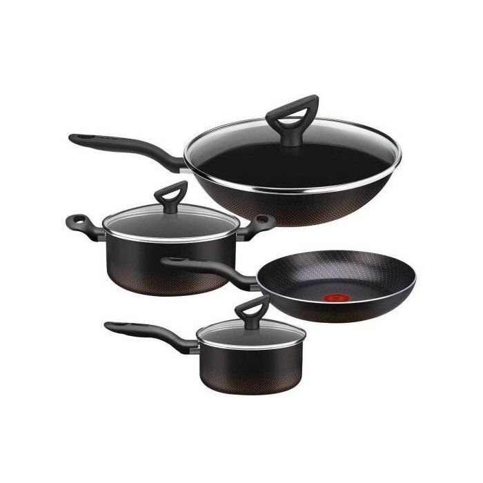 Jogo de Panelas Wok Rochedo Tampa de Vidro 2,4mm 4 Peças Preto com detalhes em cobre