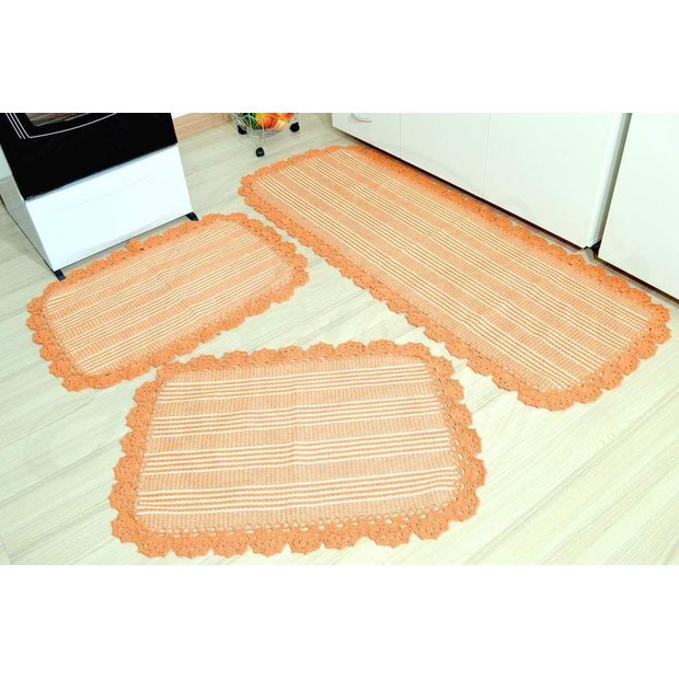 Dê um toque final na decoração de sua cozinha com o lindo jogo de tapetes. Além de embelezar seu espaço, permite maior segurança evitando possíveis quedas durante o preparo de alimentos e higienização de suas louças. São utilizados para delimitar espaços, proteger o piso, abafar ruídos e dar sensação de amplitude, conforto e aconchego.