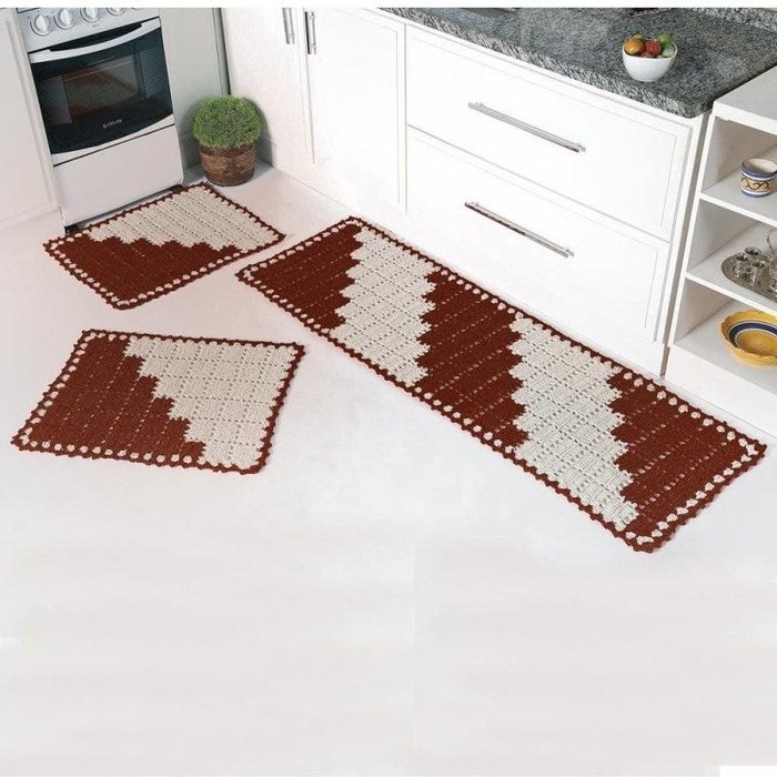 Jogo de Passadeira Napolis 3 Peças Crochê 100% Algodão - Tabaco