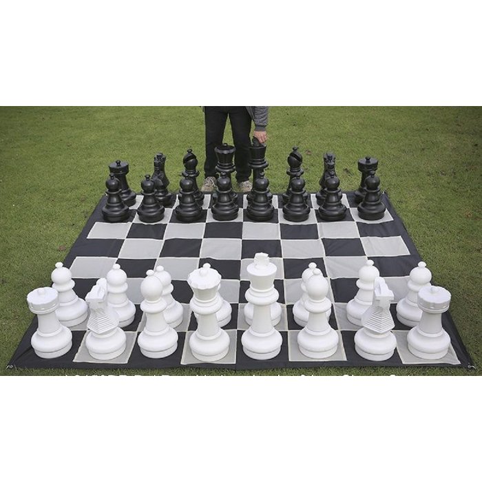 Jogo de peças para xadrez gigante rei com 63,5cm modelo premium (altíssima qualidade de acabamento e durabilidade) Pista e Campo. Uma maneira divertida e interativa de jogar xadrez. Pode ser usado ao ar livre em jardins, praias, parques, clubes, condomínios etc. Embeleza jardins e traz bastante diversão para crianças e adultos. Modelo maior (rei com 63,5 cm). Fabricado em resina plástica de altíssima resistência ao tempo e praticamente inquebrável. Jogo com 32 peças (branco e preto). Opção com tabuleiro impermeável resistente para uso indoor ou outdoor de 2,65x2,65 m.