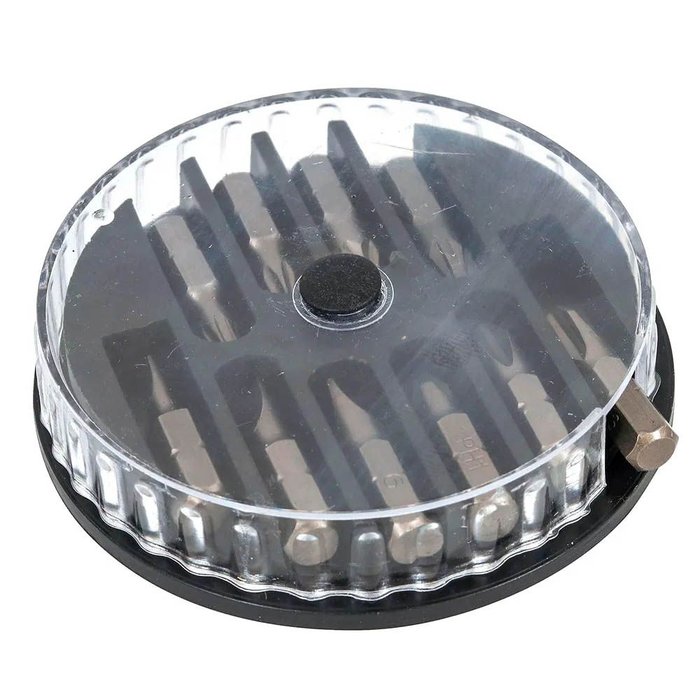 O Jogo de Ponteiras Bits D-15693 da Makita inclui 10 peças essenciais para fixação e parafusamento, organizadas em um estojo redondo de acrílico, que facilita o acesso rápido e prático aos bits. Ideal para profissionais e entusiastas que buscam versatilidade e qualidade em suas ferramentas, o kit conta com modelos Phillips, Fenda e Pozidrive, todos com encaixe universal de 1/4" (6,36mm), compatíveis com uma ampla gama de parafusadeiras e chaves manuais.