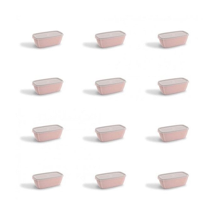 Jogo de Potes de Plástico com Tampa 12 Peças 0,5L UZ Rosa