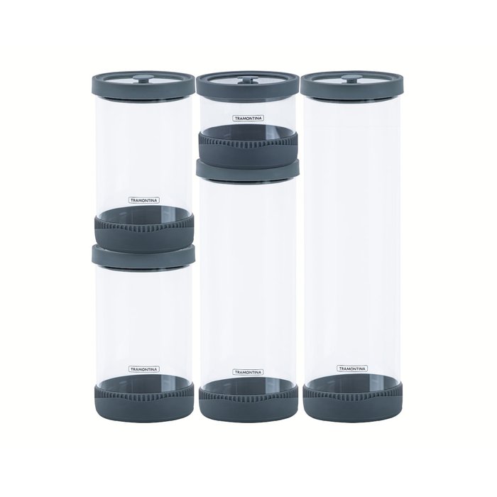 Jogo de Potes de Vidro Herméticos Tramontina em Borossilicato com Tampa Cinza