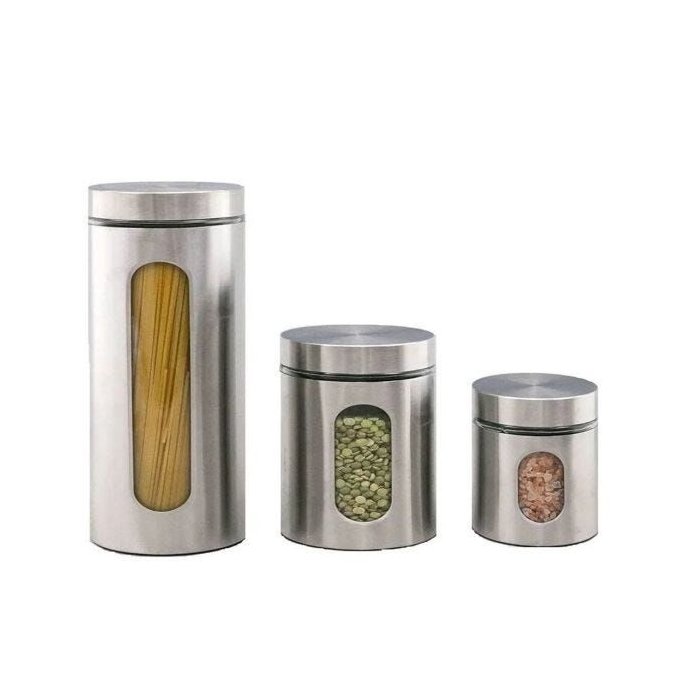 Jogo de Potes Herméticos P/mantimentos Vidro e Aço Inox 3 Pçs