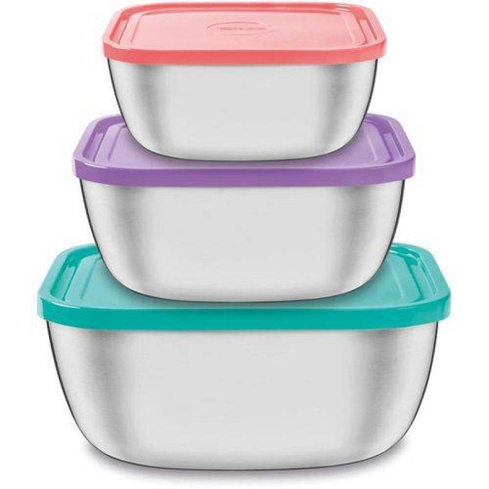 Informações sobre o produto Jogo de Potes Aço Inox com Tampa Plástica 3 Peças CUCINA A Tramontina oferece um jogo completo de recipientes para guardar alimentos e ingredientes com total segurança e higiene. Elaborada em aço inox, a linha de potes traz peças leves e resistentes, que garantem uma vedação precisa. Os alimentos vão durar por muito mais tempo. Desperdício, nem pensar. É economia e praticidade todos os dias. - Linha CUCINA. COMPOSIÇÃO A Via Inox segue com as informações de composição conforme o fabricante. - 01 Jogo de Potes Aço Inox com Tampa Plástica 03 Peças CUCINA. Dimensões Produto: - 01 Pote Quadrado com Tampa Plástica Lilás - Tamanho: 188 x 188 mm Capacidade: 2,40 Litros. - 01 Pote Quadrado com Tampa Plástica Salmão - Tamanho: 158 x 158 mm Capacidade: 1,50 Litros. - 01 Pote Quadrado com Tampa Plástica Verde - Tamanho: 228 x 228 mm Capacidade: 4,00 Litros. INFORMAÇÕES ADICIONAIS As dicas abaixo são fornecidas pelo fabricante e a Via Inox orienta para um melhor detalhamento do produto. - Em aço inoxidável, altamente durável, mantém as características originais, preservando a beleza, a higiene e a durabilidade do material. - Seu desenho limpo e sem cantos torna a limpeza muito mais fácil. - Acabamento fosco. - A tampa plástica possui vedação perfeita para a boa conservação dos alimentos. - Ideal para preparar e armazenar os alimentos, podem ir à geladeira ou ao freezer. - Podem ser lavados diariamente na máquina de lavar louças. RECOMENDAÇÕES DE USO Para um melhor manuseio e durabilidade de seu produto, leia as informações abaixo geradas pela Via Inox e fornecidas de acordo com o fabricante. Antes do uso: remova as eventuais etiquetas e lave com água quente, detergente e esponja macia. Outros tipos de produto como palha de aço, poderão riscar ou prejudicar o acabamento da peça. Modo de uso: enxágue cada item a fim de remover totalmente os resíduos dos produtos de limpeza, que, por serem abrasivos, podem danificar o inox. Sempre que possível, use água quente, pois renova o brilho da peça. Após o uso: enxaguar e secar bem a peça após o uso, caso contrário, as substâncias químicas da água (cloro) poderão causar manchas. Evite atrito entre as peças durante o processo de lavagem e no armazenamento, para mantê-la sem riscos. Evite o contato do produto com superfícies quentes, pois elas provocam a descoloração do material. Não guarde a peça em locais úmidos. A umidade também provoca manchas. Para manter o brilho, a Tramontina desenvolveu uma pasta especial para polir e remover manchas nos produtos de aço inox, que está disponível nos principais pontos de venda (94537000).