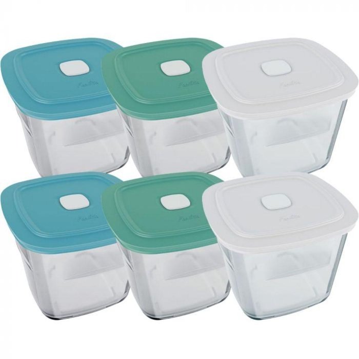 Podem ser utilizados também no microondas e máquina lava-louças. O Jogo contém 6 potes com tampa livre de BPA.