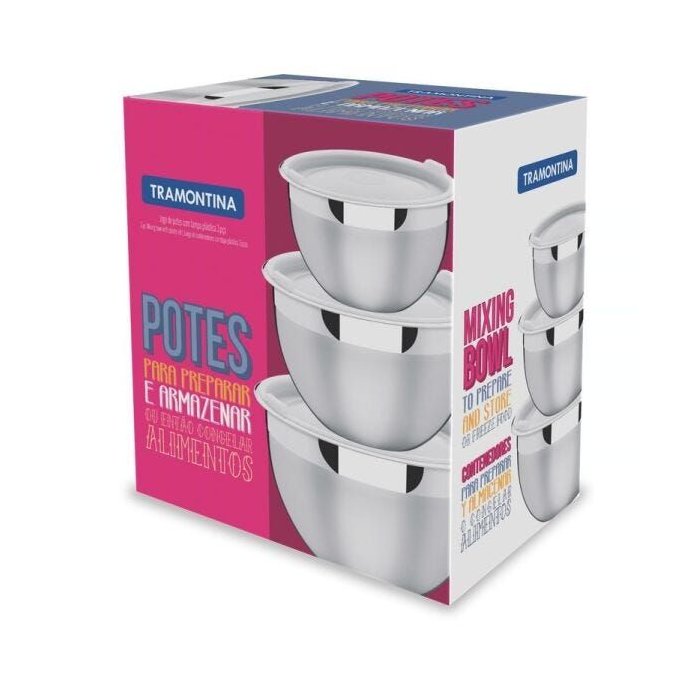 Jogo de Potes Tramontina em Aco Inox com Tampa Plastica 3 Pecas 310 Ml