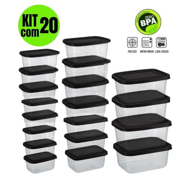 | Modelo | Jogo De Potes Vasilhas Plasticas Frezer Microondas Kit 20Pç |