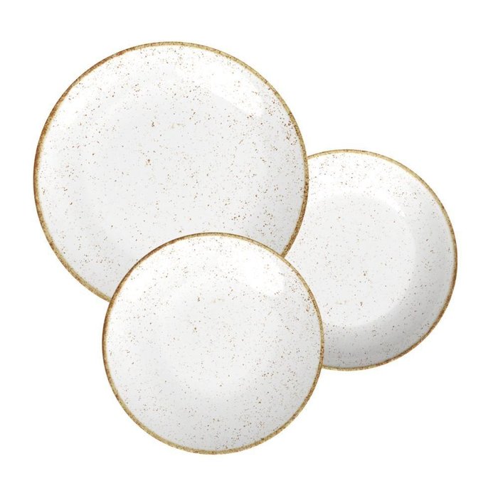 Jogo de Pratos Tramontina Rústico Marrom em Porcelana Decorada 12 Peças Branco