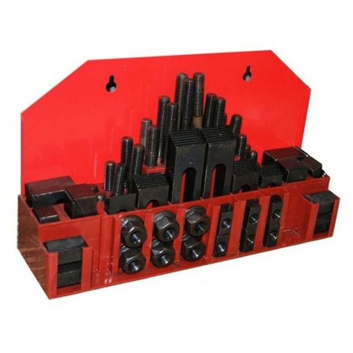 Jogo De Presilha Para Fixação M16 - Canal 18mm com 58 Peças O QUE O JOGO DE PRESILHAS O Jogo de Presilhas, chamadas também de grampos de fixação, garras de fixação, laxas para fixação ou elemento de fixação, é uma ferramenta de fixação móvel, ou seja, podendo ser inserido e/ou retirado.São muito utilizadas com a necessidade de prendimento de peças.Devido sua composição de fabricação, possui uma grande capacidade de suporta cargas e pressões, seja leves ou pesadas. Com variedades de tamanhos e modelos, para que esteja de acordo com a necessidade que deseja usar a presilhas.As Presilhas de Fixação são ferramentas utilizadas para a fixação de peças nas mais diferentes máquinas operatrizes como prensas injetoras, fresadoras e tornos. Elas são feitas em material resistente e podem suportar elevadas capacidades de cargas e pressões. ESPECIFICAÇÕES DO JOGO DE PRESILHAS - Marca: JG TOOLS;