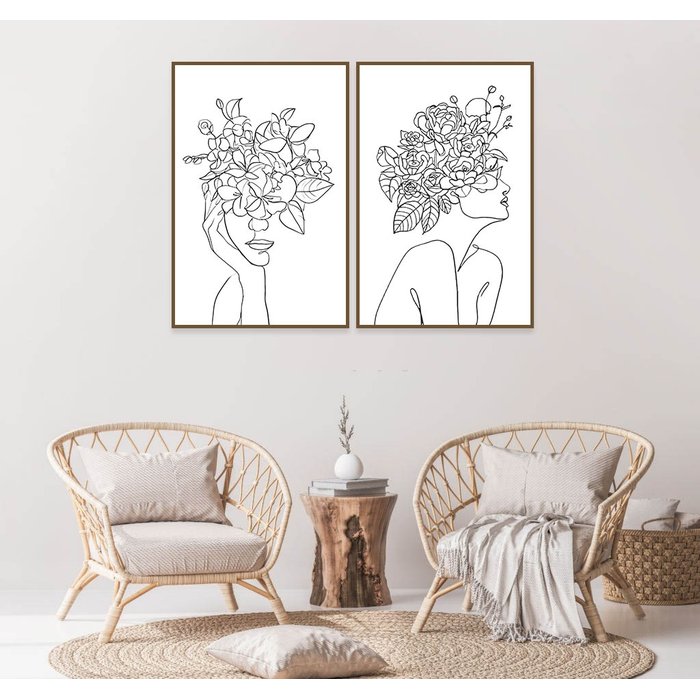 Jogo de Quadros Decorativos Duplo Molduras Marília Mulher Minimalista - 50cm Largura x 70cm Altura - Tabaco