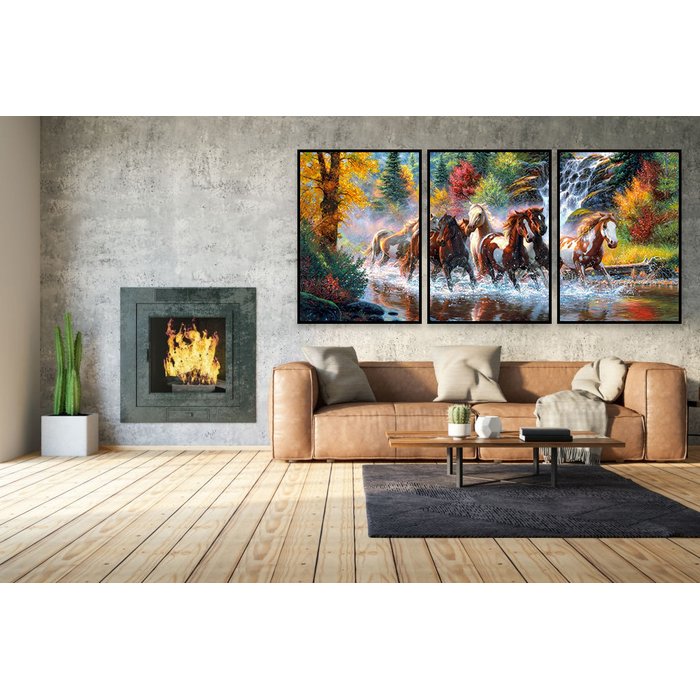 Jogo de Quadros Decorativos Triplo Molduras Marília Cavalos - 40cm Largura x 60cm Altura - Preto Preto